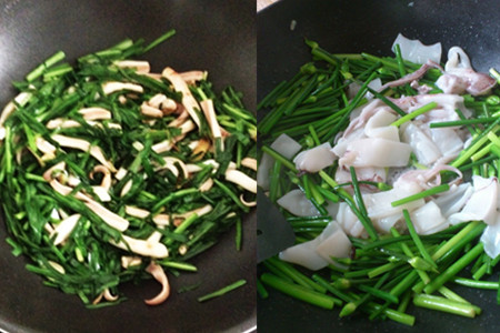 鱿鱼炒韭菜,顾名思义就是一道以鱿鱼和韭菜作为主要食材的一道美食。鱿鱼相信大家都很熟悉,它是一种常见的水产食物,体内富含丰富的蛋白质、矿物质及微量元素等,对人体有很大作用。韭菜就更不用说了,是一种营养丰富的蔬菜,但是也有很多人因为吃不惯它的味道而讨厌它。这道菜将两者混合,既能使菜肴的口感更好,又能使两者的营养融合。