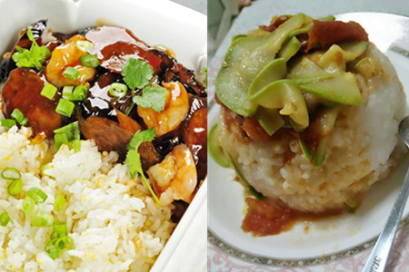 盖浇饭是一比较常见的食物,有很多种选择。比如这道鸡肉香菇盖浇饭,由于鸡肉富含丰富的营养又不会致胖,而非常受欢迎。具体做法是将鸡肉先炒制发白,然后加入撕成小块的香菇,加入高汤炖半小时,待成熟后加盐进行调味。如果觉得香菇鸡肉盖浇饭比较复杂,也可以选择简单的角瓜滑肉盖浇饭,先后将肉片和角瓜翻炒,最后勾芡装盘即可。