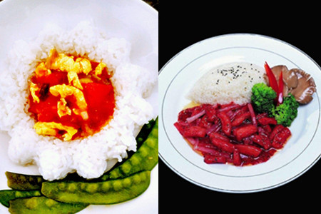 盖浇饭作为一种饭、菜一起装盘的食物,是一种非常有营养、而且口味丰富的小吃。任何菜品都可以做成盖浇饭,比较常见的如西红柿鸡蛋盖浇饭、麻婆豆腐盖浇饭、鱼香肉丝盖浇饭等。除了口味好外,盖浇饭的摆盘也很漂亮,能够充分激发人的食欲。