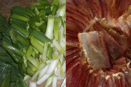 在中国,很多人是无肉不欢的,但单单吃肉,会很快就腻。怎么办?荤素搭配,简单又美味。与肉类拌炒,一般选择大蒜。像大蒜炒腊肉就很受大家欢迎,其做法也是相当简单。首先,准备好原料,一把大蒜和一块腊肉,顺便准备几个小红椒。大蒜洗净切段,腊肉先放温水浸泡,然后切薄片,小红椒切碎。