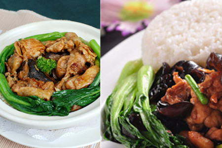 将米淘干净放入煲饭的小砂锅里,不要放太多米,否则不容易熟。将排骨、油菜、香菇、胡萝卜丝、豆芽放在米上,添加一点清水,水量基本超过食材即可。