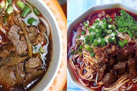 锅里加牛油和菜籽油加热,放花椒、八角、香叶、桂皮、蒜片和葱小火加热后倒进辣椒粉和芝麻的容器里。锅里加油把牛肉再炒一下,加入一些老抽和牛肉汤。煮好拉面放在铺好的牛肉上,浇上红油就能够食用了。【女物原创未经允许,谢绝转载!】