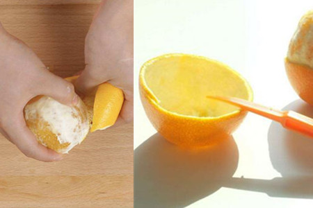 这种方法剥橙皮速度相对会更快一些,而且橙皮还不会坏。