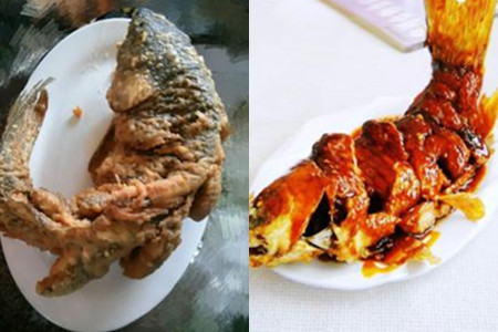 其次,把面粉和淀粉用水搅成糊状,抹在腌制好的鲤鱼上。记住,一定要抹均匀。接着,再锅中倒油。油温至七成时,手持鱼尾,将鱼头放入锅中油炸。在油炸过程中,不断用勺把油淋在鲤鱼的身上。等到鱼身上的面糊凝固时,再把整个鱼放入锅中油炸。炸到金黄色后,捞出沥干油。