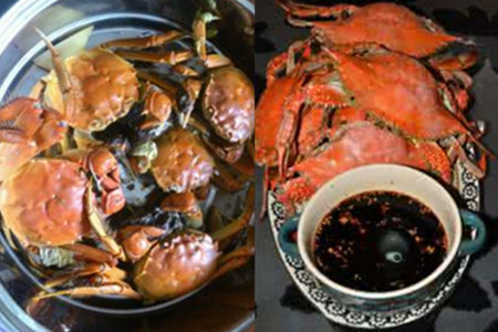 最后,把蒸制好的螃蟹取出。蘸汁食用蟹肉就可以了。