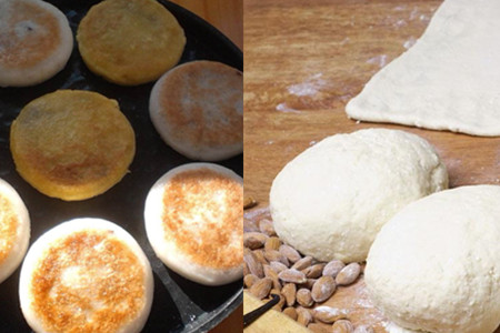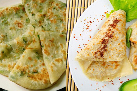辅料:手粉适量、热水225ml、冷水90ml、葱花适量、色拉油适量、盐10克、胡椒粉8克。
