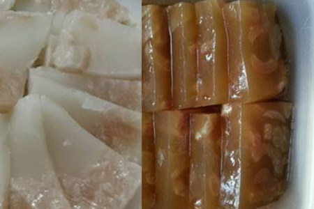这才是灌汤包的奥妙之处。汤包里的汤,最关键的是要做皮冻,一般来说大家都是用猪皮,猪蹄或者鸡爪这些富有胶原蛋白的食材来制作的。