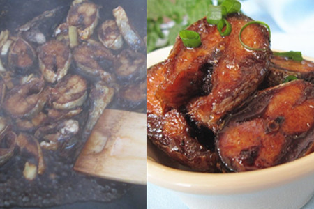 最后,在锅中放入冰糖,慢慢融化,冰糖会慢慢变成焦糖色。这时候将秋刀鱼段放入锅中,确保它们可以均匀的粘上糖浆。再放入葱姜蒜等调料,加入陈醋调味。可以加一些生抽,这样的口感会更好。不喜欢陈醋口味的朋友可以将陈醋换成少许的番茄酱,这样口味会更清甜,而且颜色也会更好看。