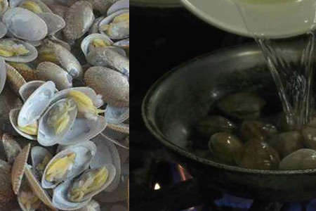 接着要做的是用刷子刷干净贝壳外表,它们壳上附着着许多海底污染物,所以要用刷子刷干净才可以放入火锅当中。最好同时放入水中煮至贝壳开口再捞起放入火锅当中,这时还可以把煮贝壳的水去掉泥沙后,再用作火锅的汤。最后把它们放入锅中一起煮即可。