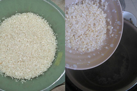 米和水要用相等的量来制作米饭,这样做出来的米饭更加粘糯。把糯米也多次淘洗用等量的水闷熟。把一碗大米饭和半碗糯米饭放在一块拌匀。