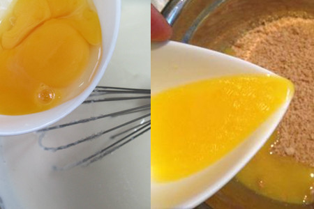 大概搅拌三分钟左右既可以拿出一个鸡蛋打碎放进去,并继续用打蛋器搅拌均匀。