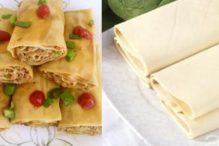 1、豆腐皮肉卷:首先准备一张豆腐皮、猪肉、蒜。