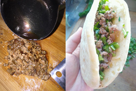 选取肥瘦相间的腊汁肉,轻松就可以剁碎,夹进脆脆的烤馍以后舀一勺汤汁浇透,香喷喷的腊汁肉夹馍就做好了,是不是很简单呢?您也可以多做一些肉,放入容器后冷藏,切几片与素菜同炒,味道也很不错呢。【女物原创未经允许,谢绝转载!】