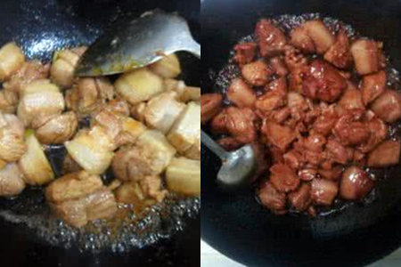 第五步:将煸制好的五花肉放入调好的汁中,用大火收汁,勾芡就可以装盘。一道好吃的五花肉就做出来了,方法十分的简单,而且辅助的食材容易寻找得到。