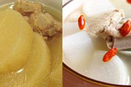 3、排骨萝卜汤冬天给自己熬上一锅萝卜排骨汤,滋补又暖胃。由于萝卜本身就带有甘甜的味道,所以炖出来的汤也是特别的限,将它和排骨一起炖煮,还有利于提鲜。将白萝卜切成较大的块状。