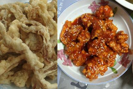 1、香酥糖醋里脊肉。首先将处理好的肉切成长条后,倒入一个碗中加上鸡蛋清、水淀粉、料酒搅拌均匀。碗中加糖、醋、蒜姜末、水淀粉、少量的汤勾兑成汁。