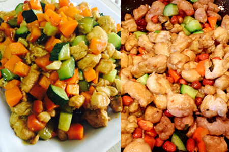 刚才所讲的做法是最古老的一种做法,所用的食材也是最为普通的。但是现在的人对吃的比较讲究,所以他们现如今的宫保鸡丁里面都普遍多了两种食材,一个是胡萝卜一个是黄瓜。由于这两种食材都可以算是熟食,所已如果想要将它们一起炒的话,就可以与花生米一起放入锅中。其实这两种食材的加入会使得味道更佳的鲜美,可以尝试一下。