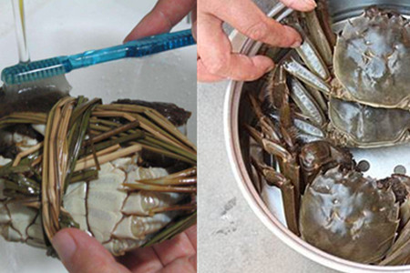 做大闸蟹前,我们首先要对其进行彻底清洗。如果害怕它的大钳子的话,可以不用拆开绑绳,直接拿到水龙头下,一边用小刷子刷洗,一边用水冲掉。不仅背面和正面都得刷洗干净,还需要把螃蟹腿上的小细毛也使劲刷掉,因为上面会带有很多污垢和细菌。
