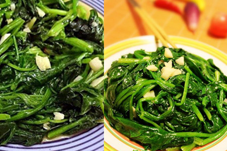 蒜泥炒菠菜。这道菜非常适合减肥的人或者没时间烧菜的人学习。