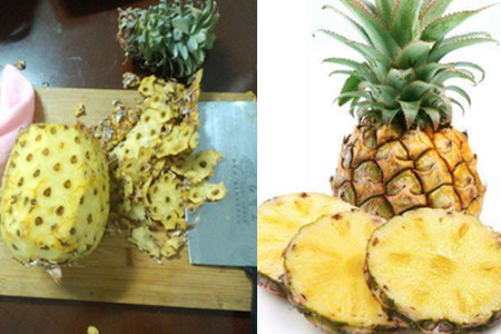 市场上的菠萝有两种一种是常见的菠萝,还有一种叫做“金菠萝”。这种“金菠萝”相对于普通菠萝走的量会小一些,因此为了保鲜都会不削皮出售。常见的菠萝的叶子上都有一些尖刺,而“金菠萝”的叶子上没有刺。别的不多说了,我们来说一下怎么给菠萝削果皮吧!