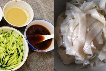 主材料凉皮准备好后,我们需要准备一些配菜。夏天比较清爽的搭配应该就是黄瓜、绿豆芽以及胡萝卜了。这些都是很常见的食物,市场上也很方便就能够买到。我们只要把买回的豆芽焯水,黄瓜和胡萝卜切丝就可以,之后还需要准备一些香油以及醋、生抽。
