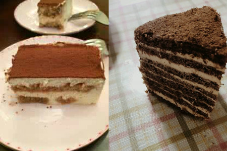 在蛋糕上蘸上咖啡朗姆,然后再加入奶酪液。在上面再在放上蛋糕,蘸上刷咖啡酒,在上面加入奶酪液。