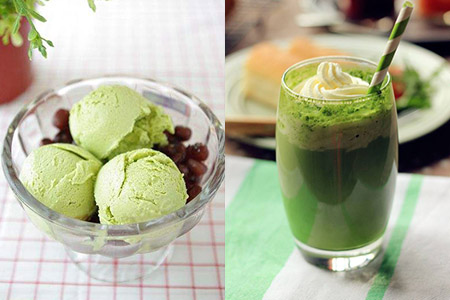 二:抹茶冰饮,夏天吃抹茶不仅可以降火也能美容,将其和冰块搅碎,可以制作一杯抹茶冰沙。或者将抹茶和冰激凌球搭配,可以吃到一杯美味的降火冰激凌。