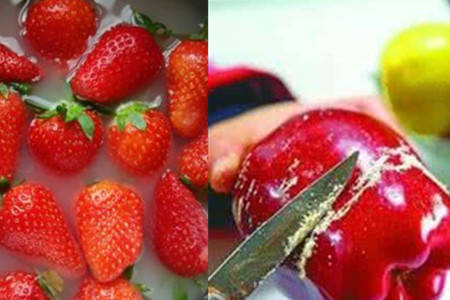 但是,不知家长注意到没,在超市或者水果店购买的草莓,个个光滑透亮,感觉覆盖上了一层透明的保护膜。用手轻轻一刮,还会出现很多细腻的白色物质。这就是果蜡。为了使水果更容易出售,很多商家都会使用此种方法。因此,在吃草莓时,我们需要将草莓上附着的果蜡给洗干净。