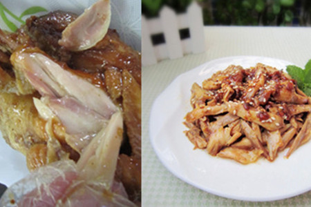 将煮好的鸡拿出放凉,并且慢慢将鸡肉撕下。在撕好的鸡肉上倒上酱汁,还可以撒一点芝麻或者辣椒。可以根据自己的口味来定。这样,一盘正宗的手撕鸡就做好了。(喜欢麻辣口味的朋友,在制作酱汁时就可以多添加一些辣椒。具体口味可以自己来尝试)