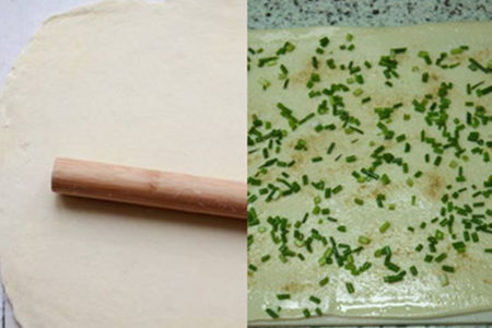 原料:花椒面、盐、面粉、发酵粉、葱、油。