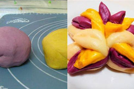 南瓜紫薯三色花卷
