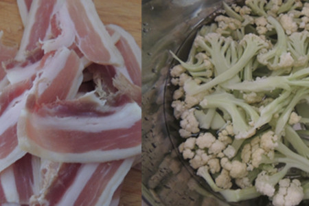 先将腊肉(培根)放在油中煸一下,将腊肉中的油脂榨出会更香。