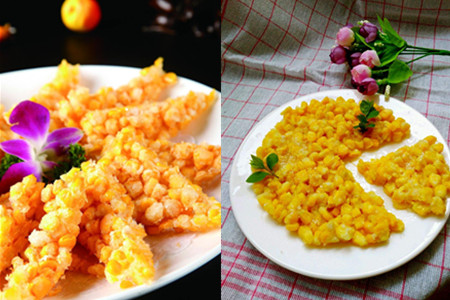 黄金玉米烙香甜酥脆,适合做给小孩子当零食吃。除了玉米烙之外,脆片玉米也很受欢迎。脆片玉米来自台湾,目前很多城市的大街小巷都有卖,是逛街必备的充饥美食。做法相对玉米烙要简单一点,口味也要更大众一点。