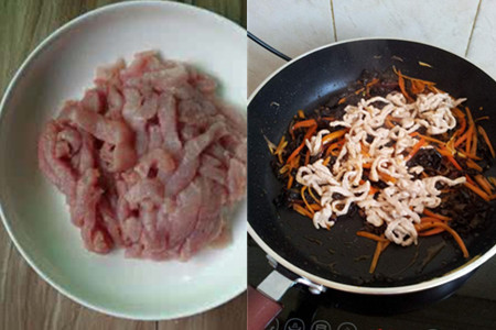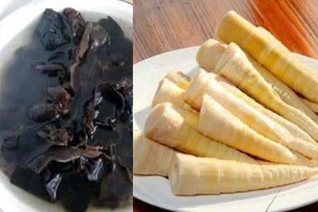 首先,将泡发好的黑木耳切成丝状,笋片切成丝如果是干笋要事先泡发。继续把猪肉切成丝,猪肉最好选择全瘦肉的。把葱姜蒜切成末,放在盘子中备用。