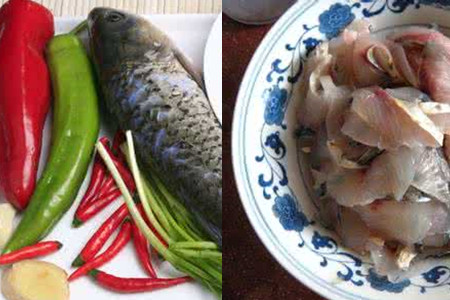 首先要将市场上买来的草鱼宰杀干净,之后将鱼头分开剁成两半,鱼骨切成段状,而鱼肉顺着鱼尾的方向切成片状。