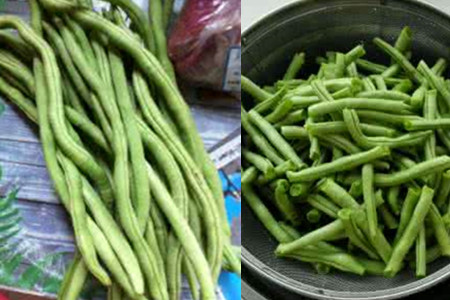为了消除四季豆的毒性,首先,你需要用开水将四季豆烫熟,直至四季豆看上去紧缩发皱。
