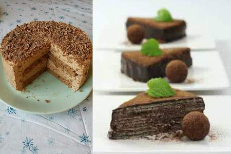 还可以把做好的巧克力蛋糕切片后,中间加入奶油和樱桃酱。