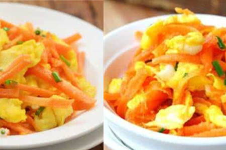 不过我们平时自己在家的时候,还是要学习一下红萝卜的简单的做法。其中的一道菜就是和鸡蛋一起炒着吃。步骤也是相当的简单的。不过首先得准备好用料,就是红萝卜、鸡蛋还有葱花等。
