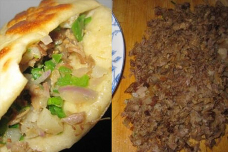 4、添上水之后要继续的炖,肉夹馍的肉一定要炖的非常烂才有味道。差不多一共一个半小时就能吃了,这时把肉剁成碎肉沫,加上尖椒和香菜一起放在准备好的饼里面。非常美味的肉夹馍就完成了,赶快的尝一口吧!【女物原创未经允许,谢绝转载!】