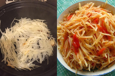 既然番茄和土豆能做汤,那肯定也能炒菜了。其实,番茄炒土豆丝是非常美味的一道菜。很多人都喜欢用青椒炒土豆丝,但我觉得,番茄炒土豆丝,不仅好吃又美观。番茄本身就有酸甜的口感,再加上香香脆脆的土豆丝,真的十分的诱人。做法很简单。