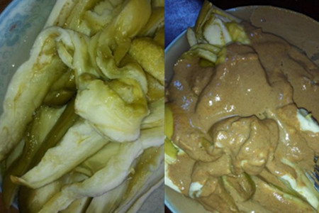 首先,将切条的茄子上锅屉蒸15分钟左右,直至茄子变色熟透后才能起锅。切记不要半生不熟的,这样就是让麻酱蒜泥茄子失去本该有的味道。