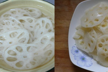 首先需要将莲藕洗净后,将莲藕的表皮用到削干净以后,将莲藕切成薄片放在一旁备用。