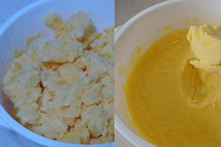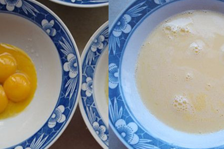 首先,将蛋的蛋黄和蛋清分开,做冰淇淋只需要蛋黄就好了。在分好的蛋黄中加入适量的细白砂糖和牛奶(就是我们早上喝的鲜牛奶就可以),用力混合搅拌均匀,直至粘稠状。