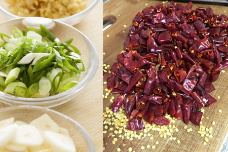 其次,我们还需要准备一些家常菜必备的调味品,切好的葱姜蒜也是必不可少的。还有就是干辣椒和花椒,这是非常重要的一部分,可以影响整个菜品的香气。干辣椒去掉蒂,切成段,方便制作的时候香气浓郁,更加入味。准备好之后我们就可以开始着手准备宫保鸡丁的制作了,只要食材选的好,按照下面的方法,你也可以在家做出一道像样的宫保鸡丁。