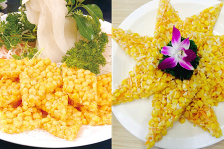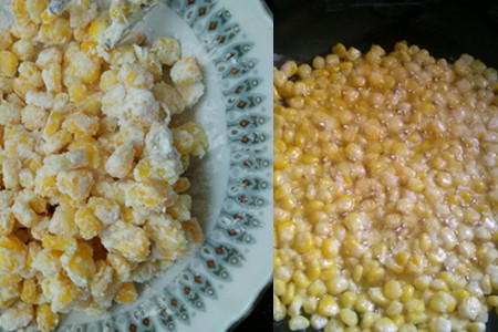 之后再将刚盛出来的半碗油再浇在玉米粒上。