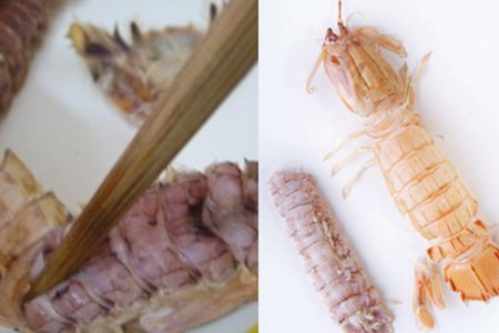皮皮虾很美味,但因为其外壳坚硬无比,在食用时一不小心可能会划破手指,所以食用皮皮虾前应当掌握剥壳技巧。皮皮虾最快最简单的剥壳方法如下,首先将皮皮虾给拿起,将皮皮虾两侧的角给去掉。