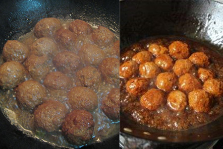 step8:将之前已经炸好的肉丸倒入进锅中。