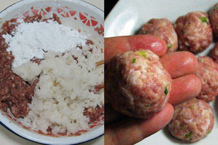 step5:接下来,热锅。往锅中加入少许油,烧至七成热后,将已处理好的肉末捏成丸子状后放入锅中,进行油炸,直至至其表皮酥脆即可。