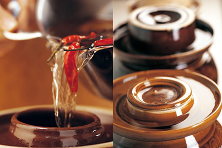 等到蔬菜全部晾干后,将它们全面放进泡菜坛子中,一定要淹没在盐水中。盖上坛子盖,在水槽中掺入清水以密封坛子。