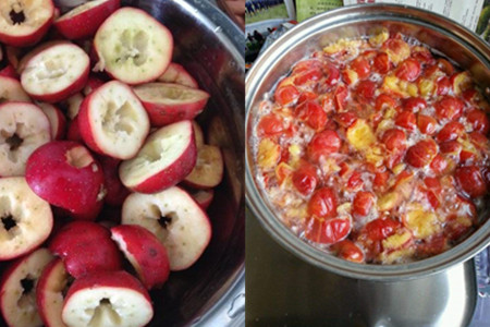 第二步是将处理好的山楂放入锅内,这里大家要注意尽量使用不锈钢的锅,不要用铁锅。在锅里加入少量水,刚刚漫过山楂即可。用中火熬制,再加入提前准备好的冰糖,慢慢搅拌。直到果肉变软,颜色变成鲜红色,用勺子可以压碎果肉,同时锅里的东西变得粘稠,就可以离火了。如果喜欢很稠的酱的朋友可以加入一点柠檬汁。